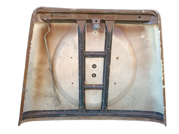 Cofano Motore Land Rover Series ex Italian Limited Edition come si vede dalla foto della parte inferiore ,riverniciato in seguito verde , completo di cerniere ,riscontro, asta supporto cofano ,gommini e supporto piatto .non presenta ruggine sul telaio.